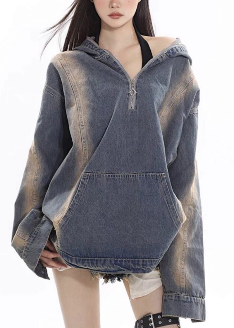 Dam Denim Blå Dragkedja Patchwork Hoodie Coat Fall