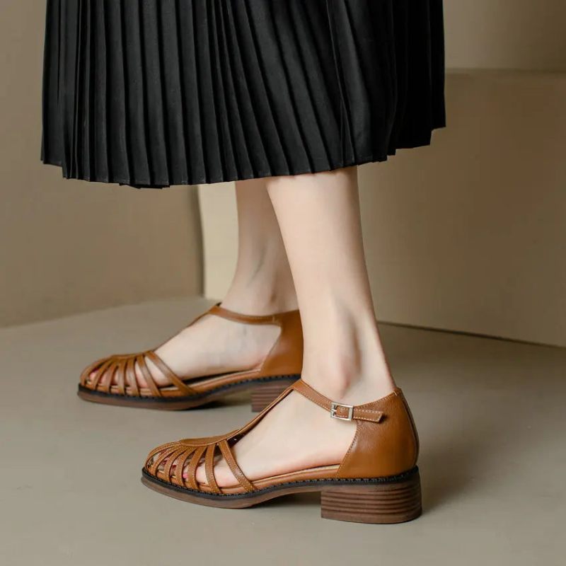 Dam Sandaler Vår Sommar Äkta Läder Gladiator Tjock Låg Klack Skor Kvinna Party