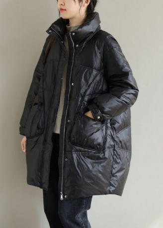 Dam Svart Fuskpälskrage Fin Bomullsfylld Damrockar Vinter