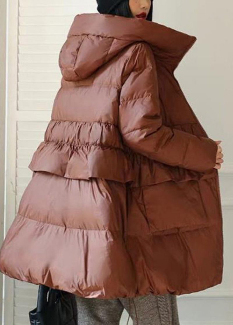 Diy Brown Hooded Patchwork Ruffled Duck Down Puffer Coat Winter