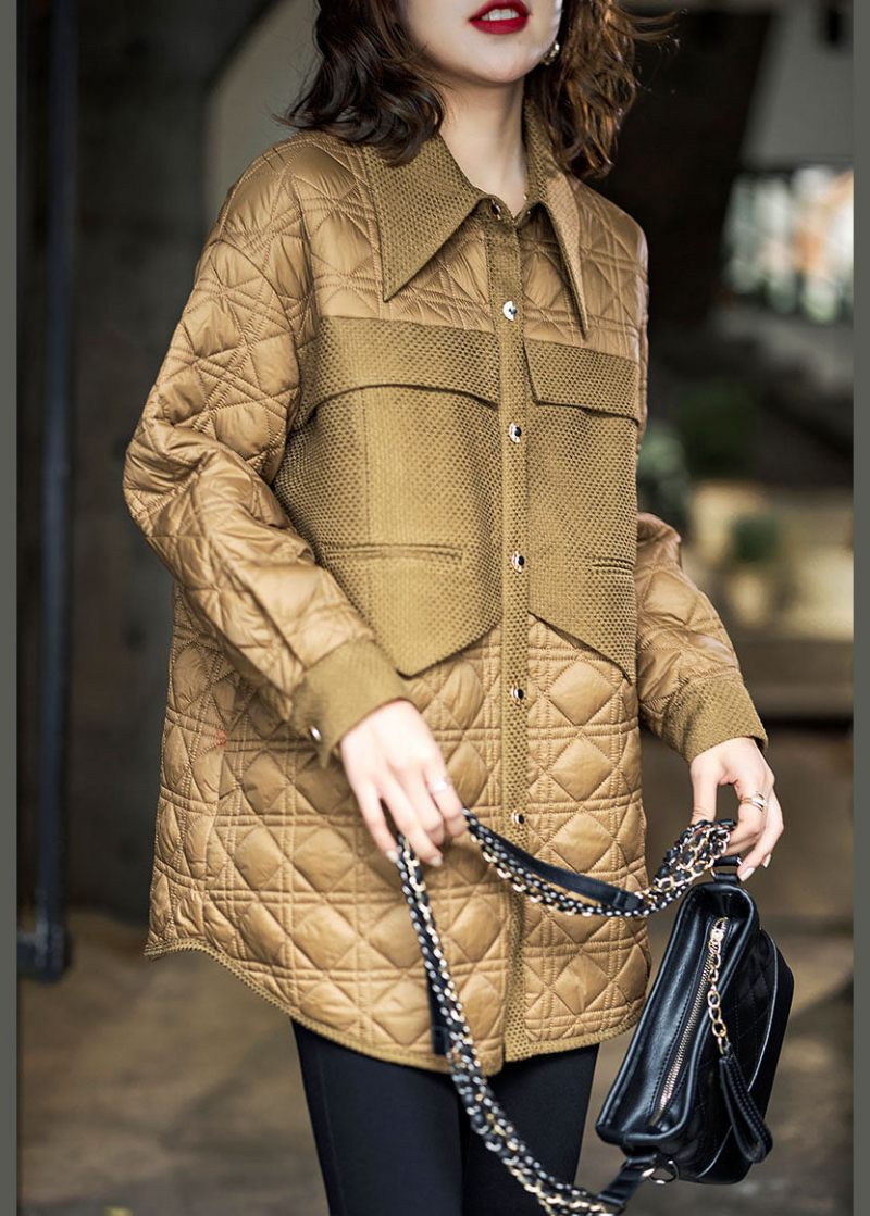 Gör-Det-Själv-Kaffe Peter Pan-Krage Patchwork Fin Bomullsfylld Parka För Kvinnor VinterTyg: Bomullsfylld
