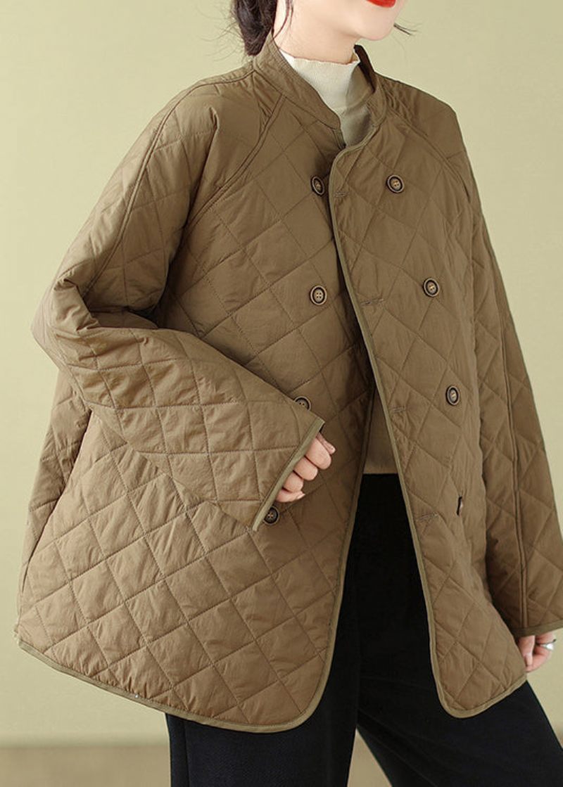 Ekologisk Kaffeställ Krage Dubbelbröst Fin Bomullsfylld Jacka Vinter