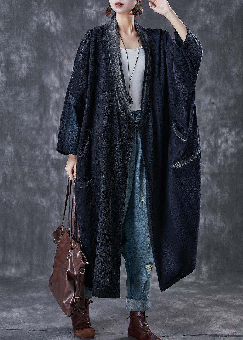 Ekologisk Marinblå Överdimensionerad Kinesisk Knapp Bomull Trenchcoats Vår