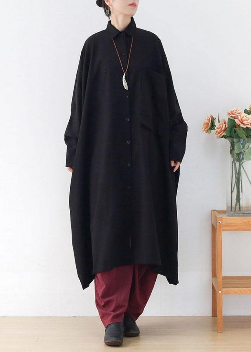 Ekologisk Svart Peter Pan Krage Knapp Höst Långärmad Kappa