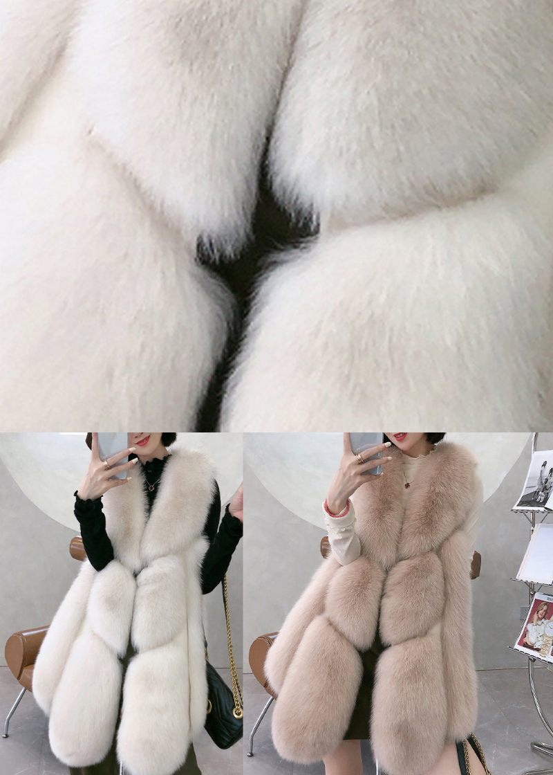 Elegant Aprikos Rävkrage Midläderväst VinterTyg: Konstläder Och Fuskpäls