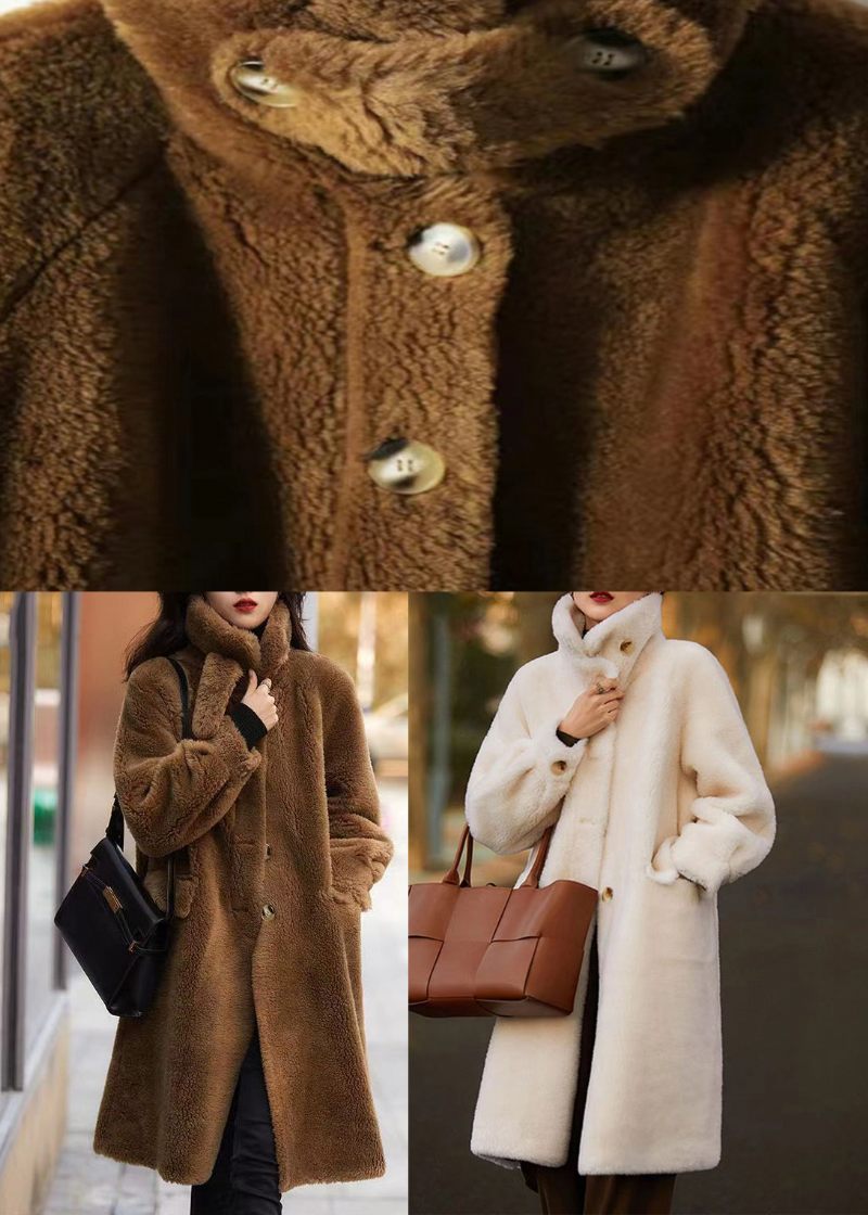Elegant Beige Stativ Krage Fickor Patchwork Ull Trench Vinter