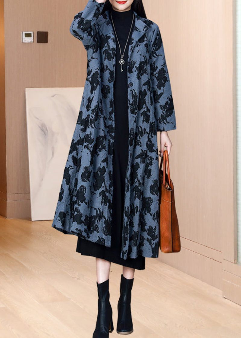 Elegant Blå Stativkrage Jacquardfickor Yllerock Höst