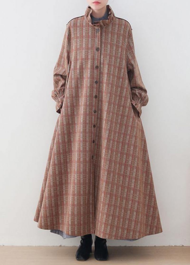 Elegant Casual Mellanlånga Jackor Jacka Rosa Rutig Stativkrage Button Down UllöverrockMaterial Som Används: Ullblandad