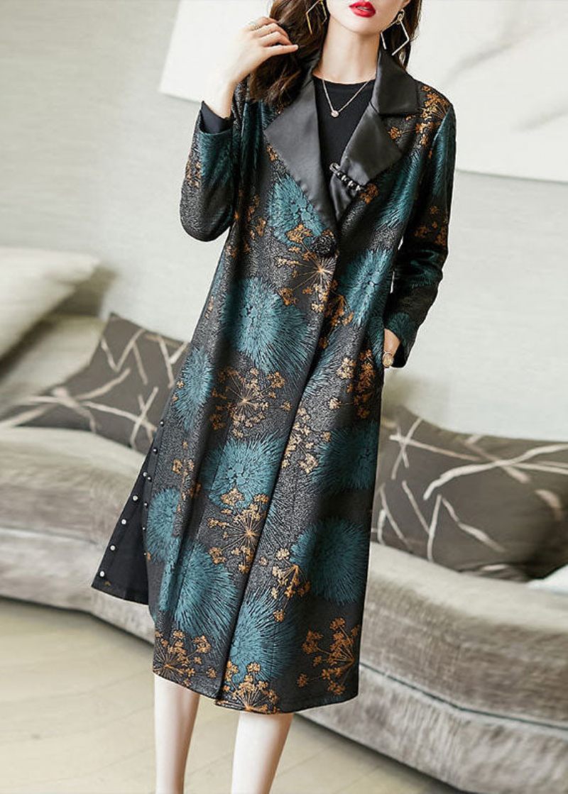 Elegant Färgblock Peter Pan Krage Fickor Tryck Siden Trenchcoat Fjäder