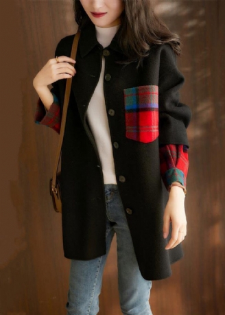 Elegant Grå O-ringad Yllerock Med Knapp Med Lång Ärm