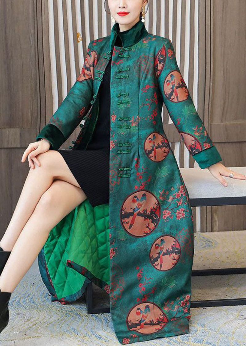 Elegant Grön Stativkrage Kinesisk Stil Tryck Fin Bomullsfylld Kappor Vinter