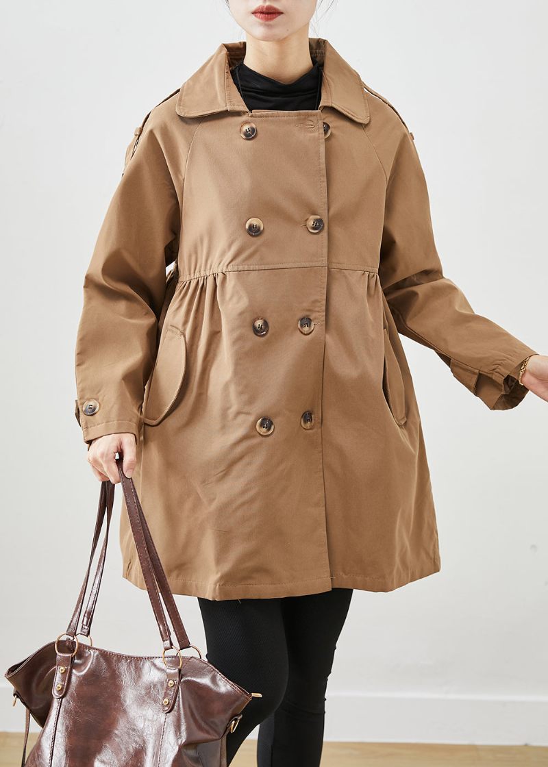 Elegant Kaki Dubbelbröst Rynkad Bomullsrock Höst