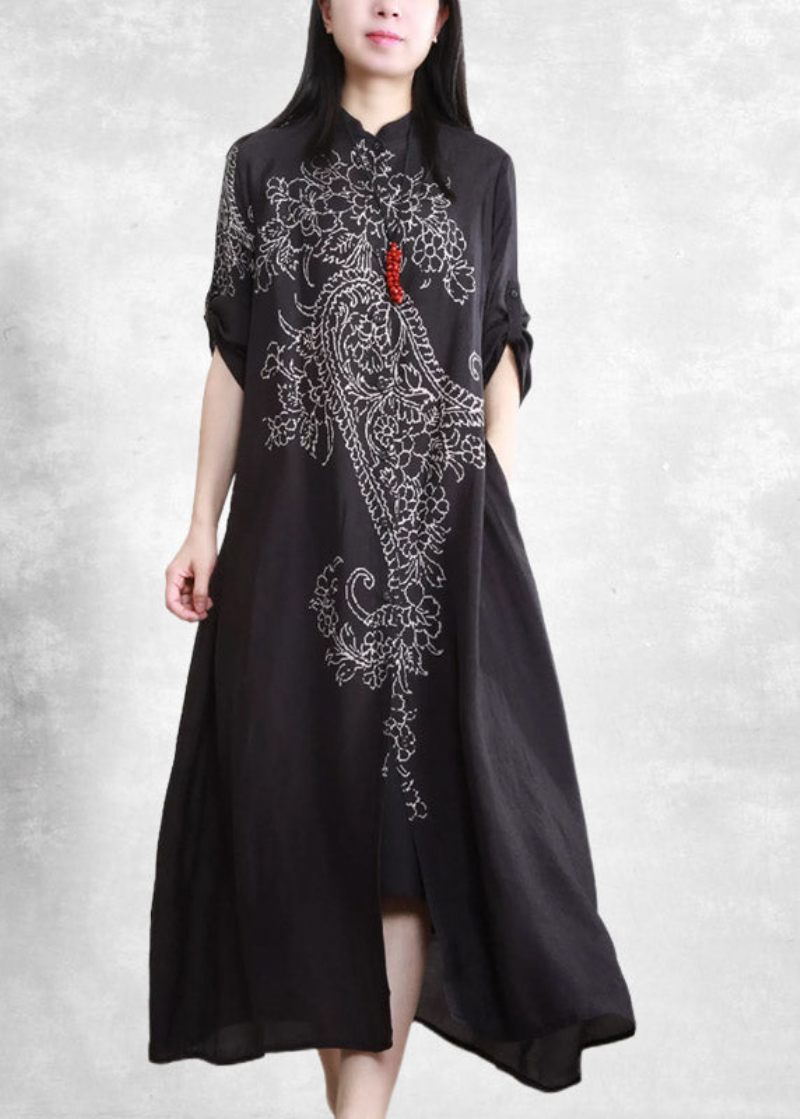 Elegant Svart Stativ Krage Knapptrycksfickor Linnekoftor Halvärm