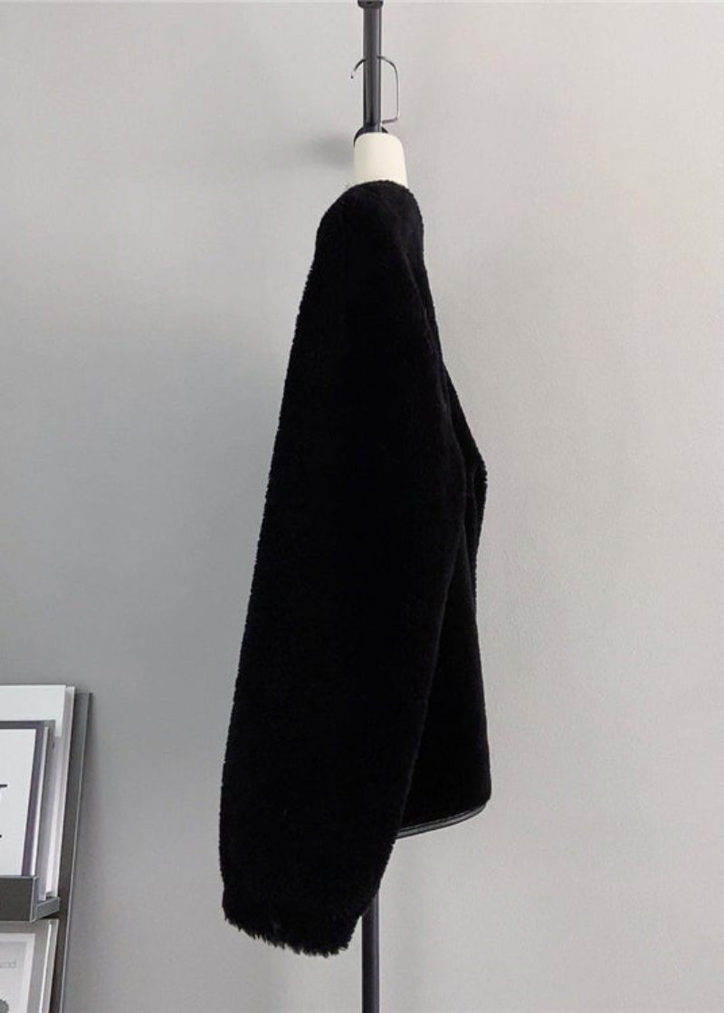 Elegant Svarta O-halsfickor Button Ullrockar Vinter