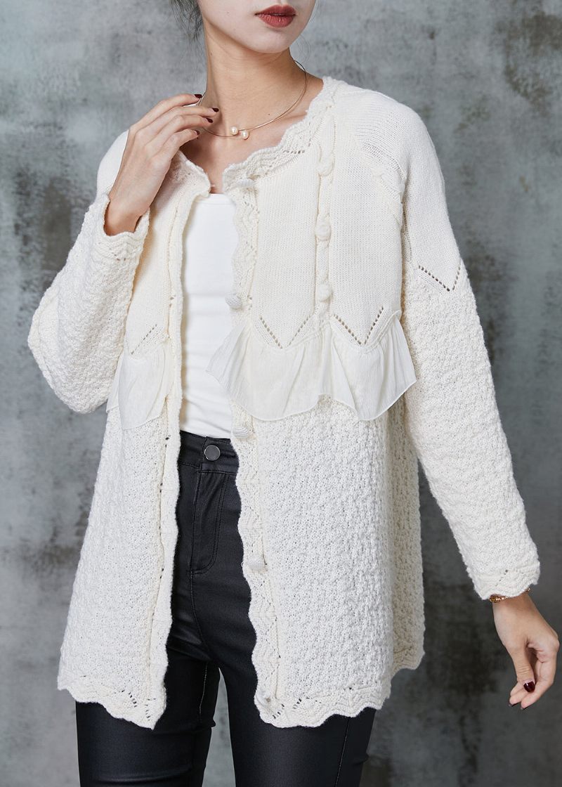 Elegant Vit Volanger Patchwork Stickad Kappa Ytterkläder Spring