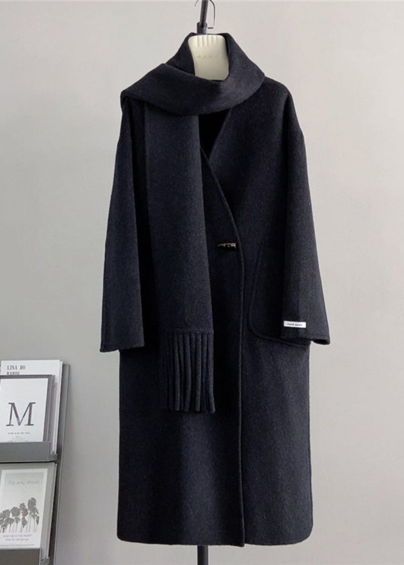Elegant Vita V-halsfickor Scarf Yllerock Vinter