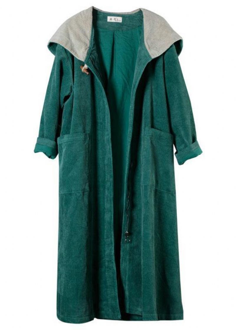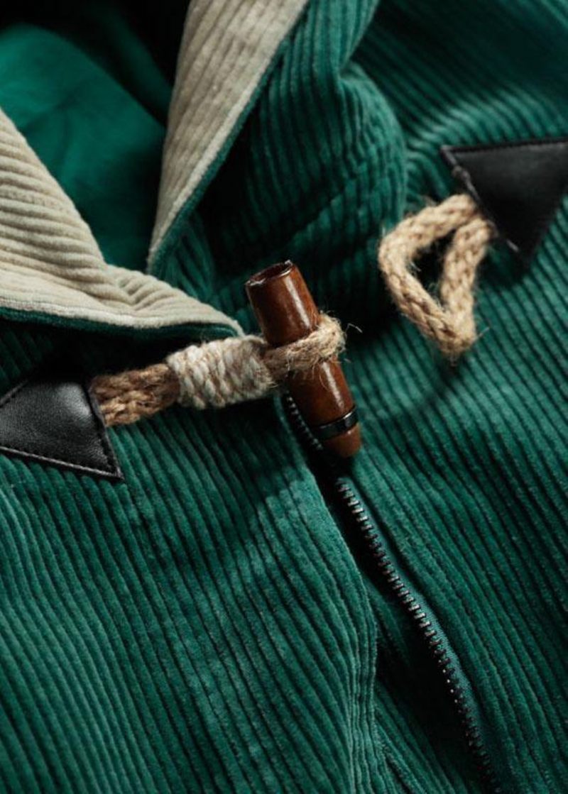 Eleganta Gröna Fickor Hooded Blixtlåsknapp Höst Huvtröjor Outwear Långärmad