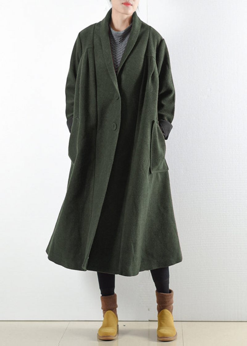 Eleganta Gröna Skårade Knappfickor I Ylle Trenchcoats Långärmad