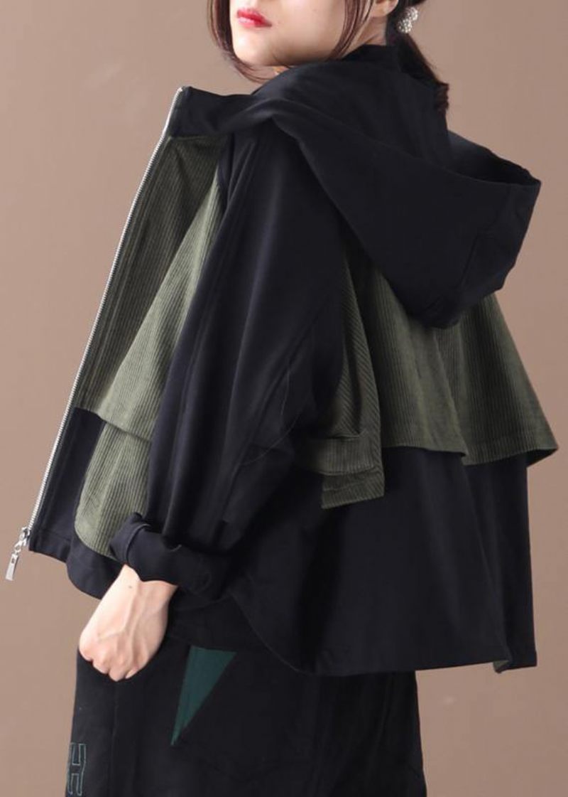 Eleganta Höstkläder I Bomull Med Dragkedja För Kvinnor Svarta Lapptäcksgröna Blusar