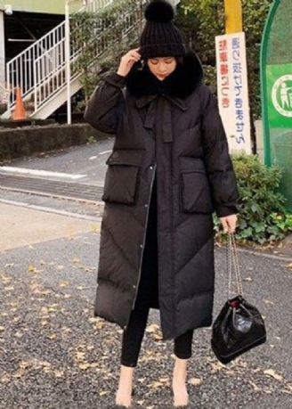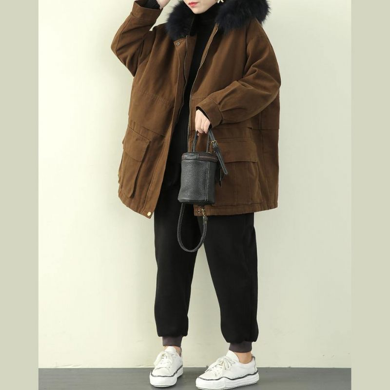 Eleganta Vinterkappor I Choklad Plus Storlek Kläder Med Huva I Fuskpälskrage