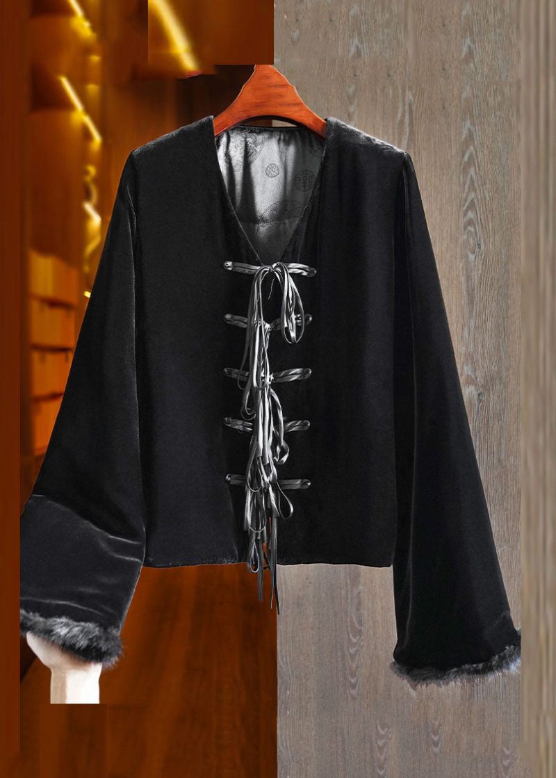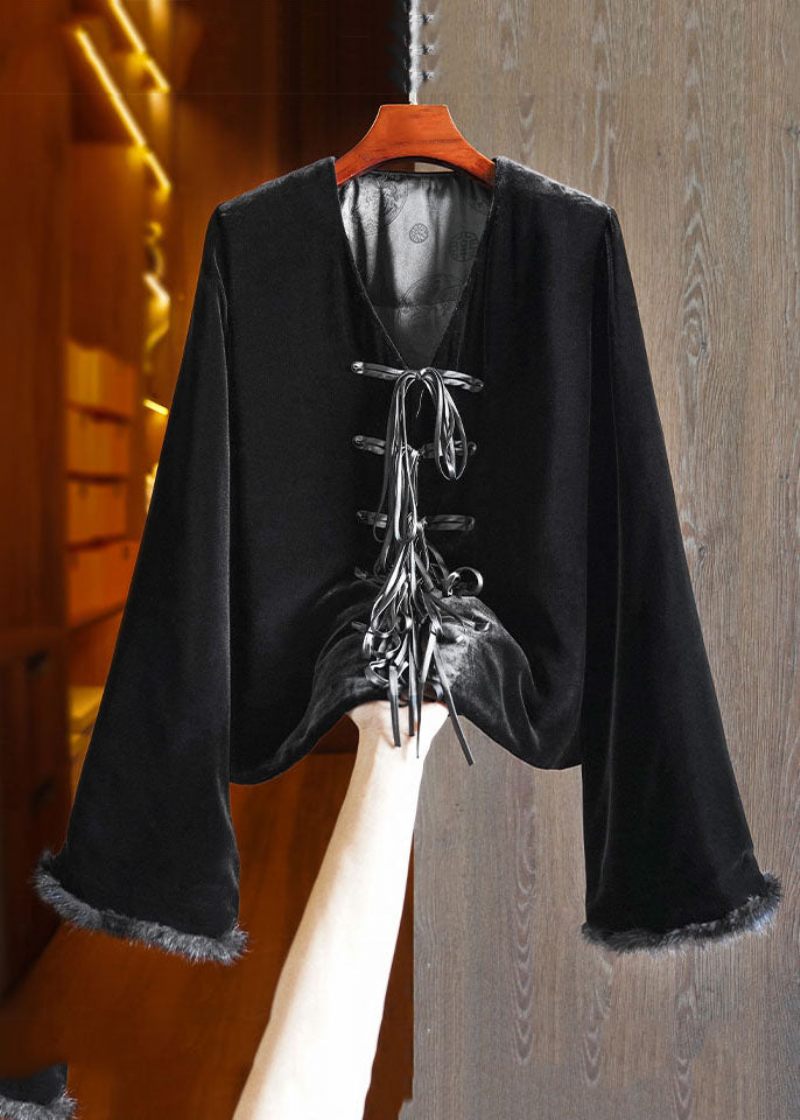 Enkel Aprikos V-hals Tofsknapp Varm Silke Velourjackor Vinter