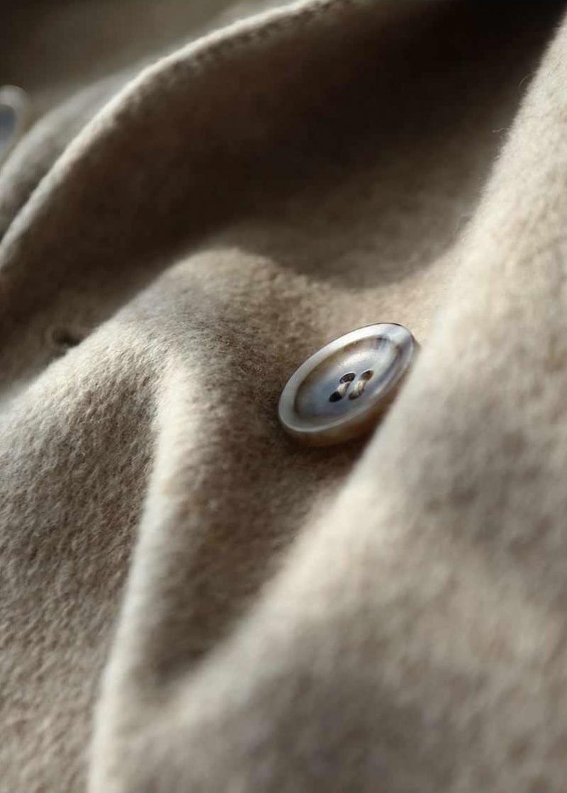 Enkel Beige Peter Pan Krage Slim Fit Double Breast Yllerockar Höst