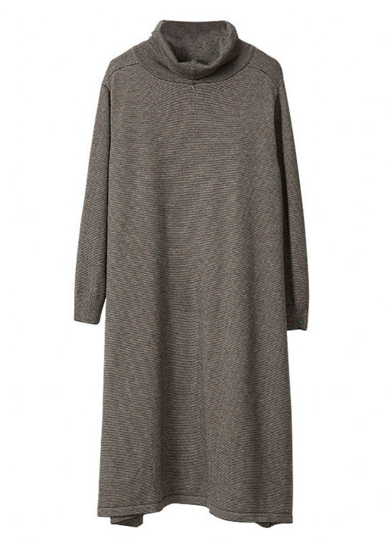 Enkel Mörkgrå Turtleneck Randig Patchwork Ylleklänning Höst