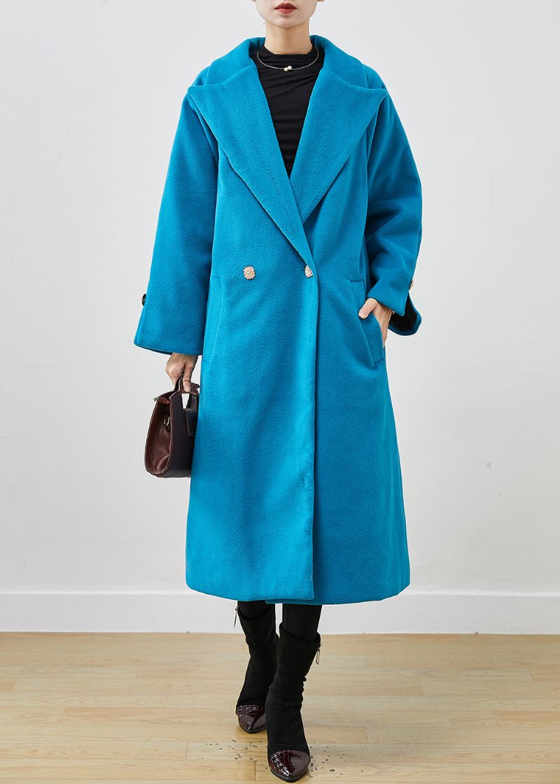 Enkel Sjöblå Överdimensionerad Dubbelbröst Yllegravfjäder