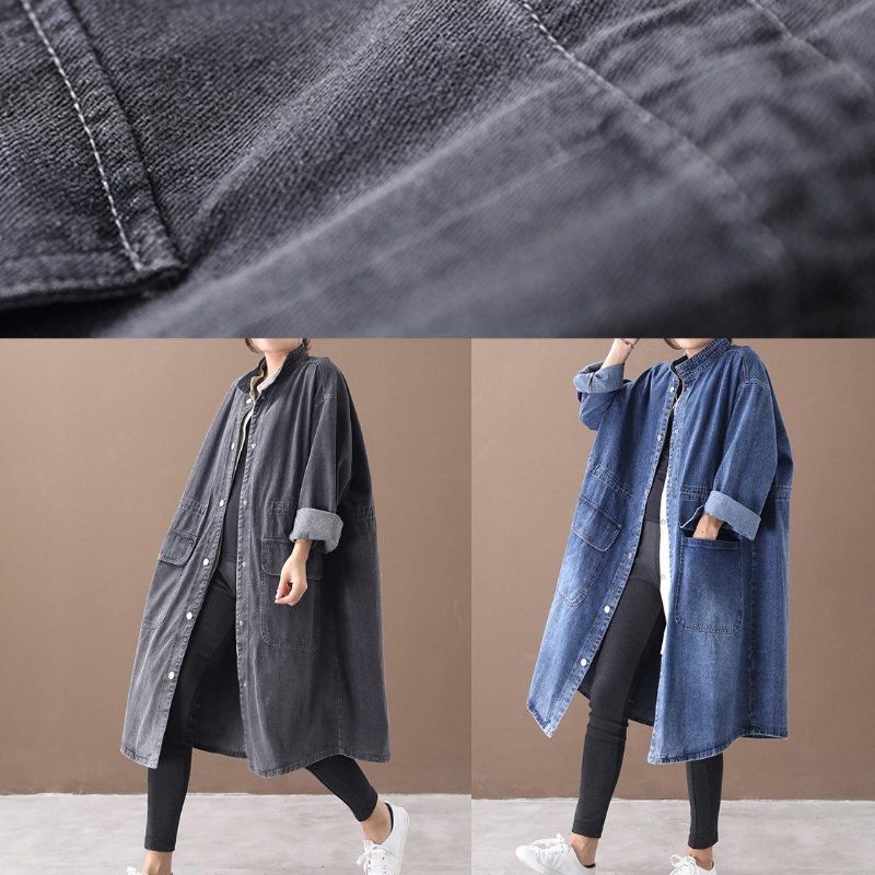 Enkel Stativ Krage Dragsko Mode Tunika Kappa Denim Svart Midi Dam Kappor
