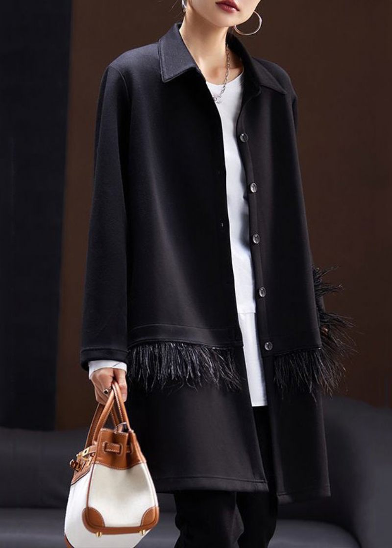 Enkel Svart Tofsad Knapp Patchwork Bomullsjackor Långärmad
