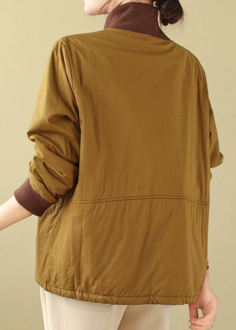 Enkla Gula Höga Halsfickor Patchwork Fin Bomullsfylld Topp Vinter