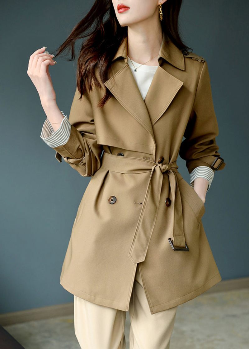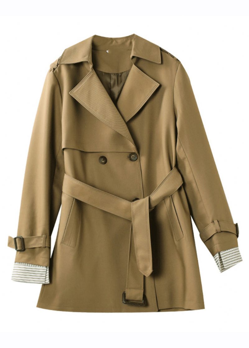 Fashion Khaki Naggad Trench Coat Långärmad Knapp
