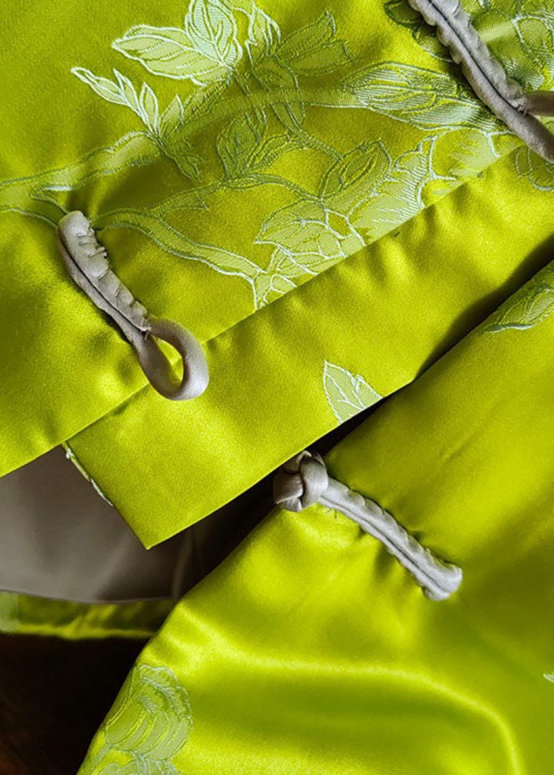 Fin Grön Siden Jacquard Kinesisk Knapp Fin Bomullsfylld Kappor Vinter