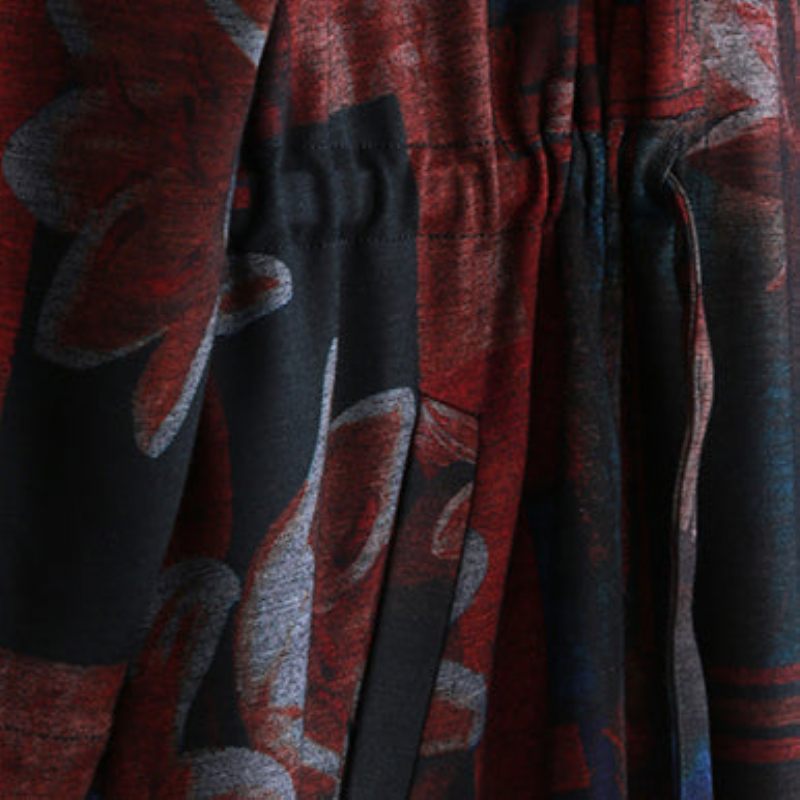 Fina Kappor Med Vinröd Tryck Överdimensionerade O-ringad Knyt Midja Ytterkläder Eleganta Långärmade Fickor Klänningar