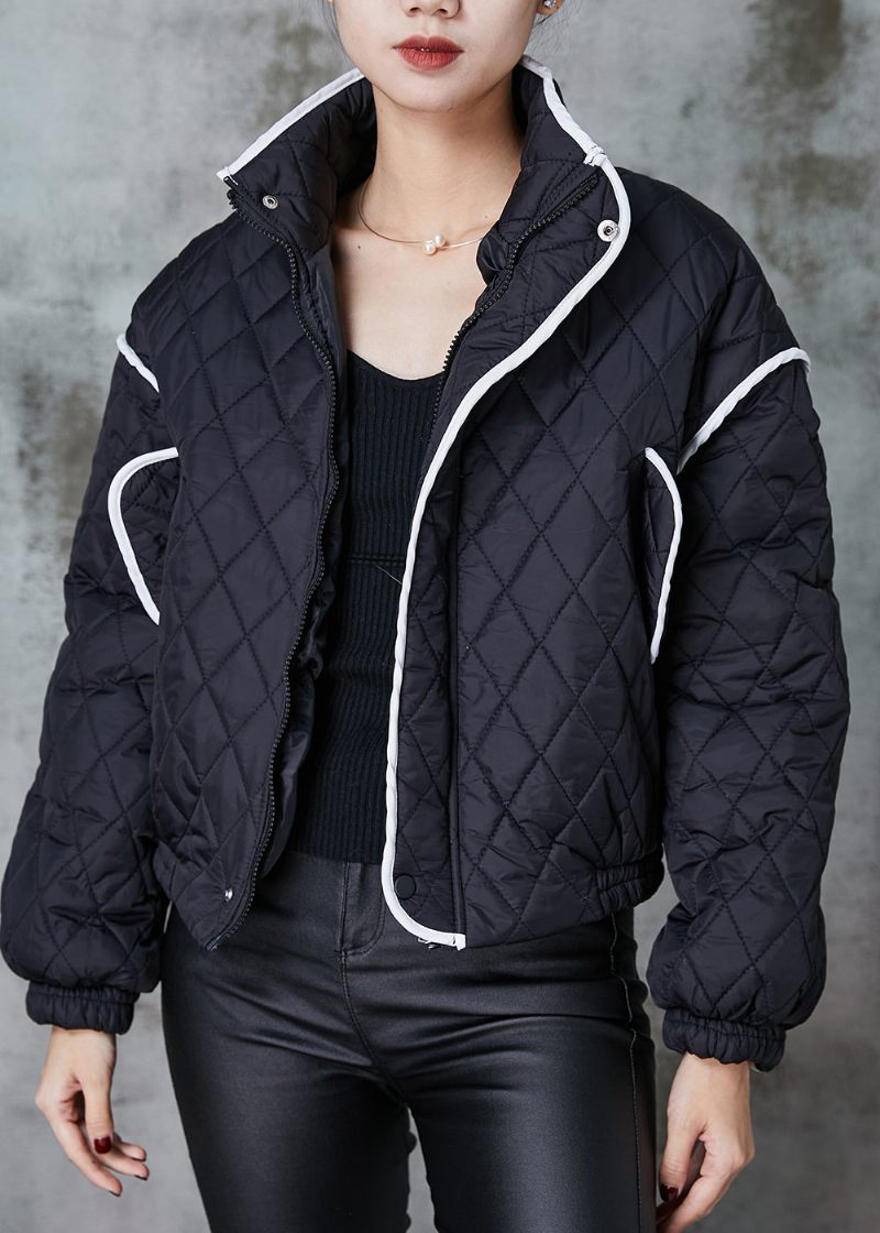 Fina Svarta Oversized Patchwork Bomullsfyllda Kappor Vår