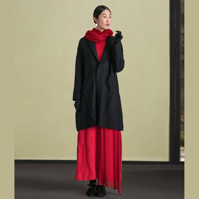 Svarta Ytterkläder I Ylle Av Högsta Kvalitet Plus Size Långärmade Jackor & Rockar Broderirockar För KvinnorDenna Klänning Är Gjord Av Bomull Eller Linne, Mjuk Och Andas.
