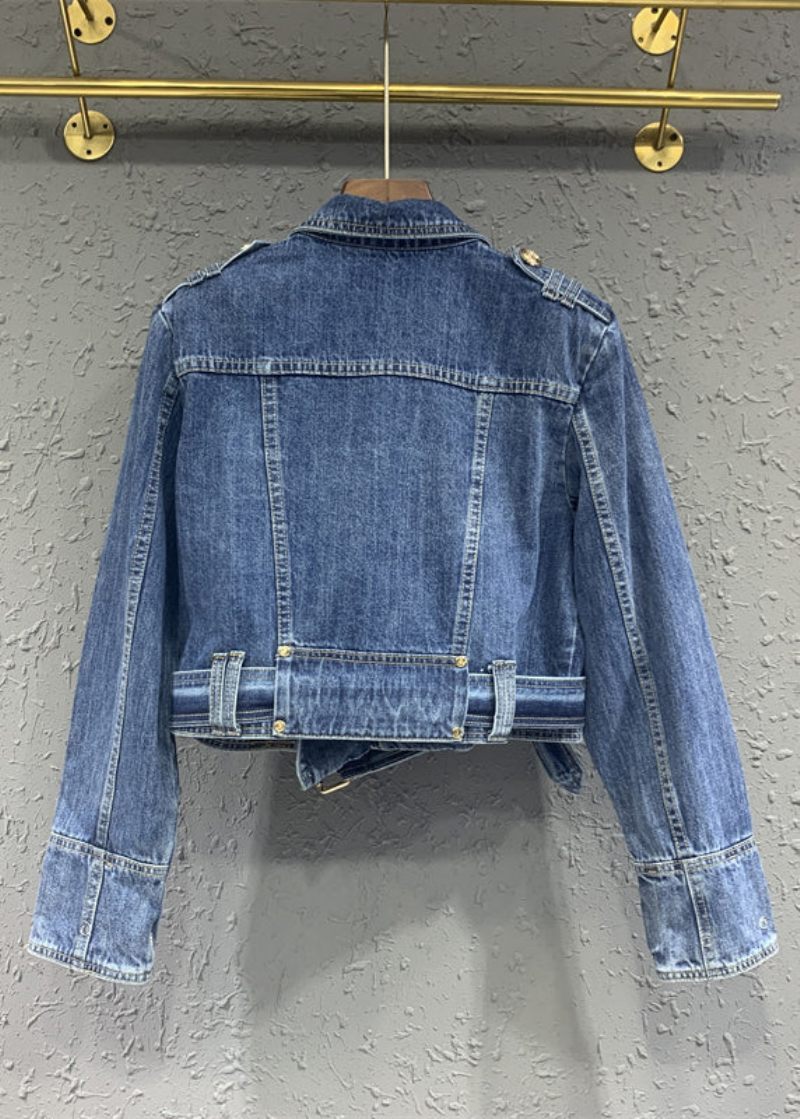 Finblå Peter Pan Krage Zip Up Patchwork Jeansjackor Höst