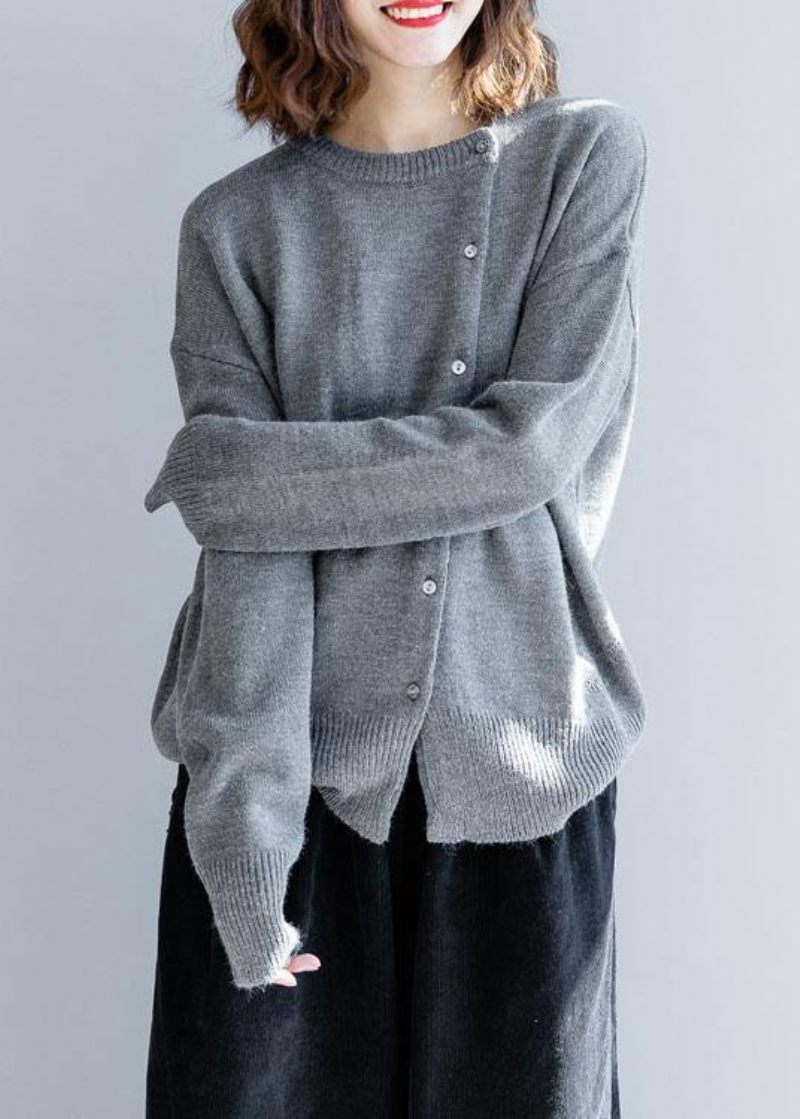 For Work Grå Stickade Kläder Trendiga Plus Size O Halsfickor Tröjor