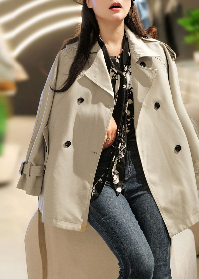 Fransk Aprikos Peter Pan Krage Sashes Dubbla Bröst Spandex Kappor Höst