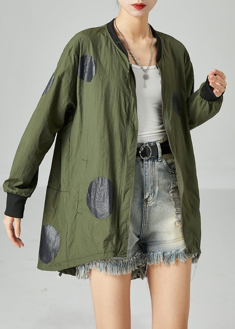 Fransk Armégrön Oversized Patchwork Dragsko Silk Coats Spring