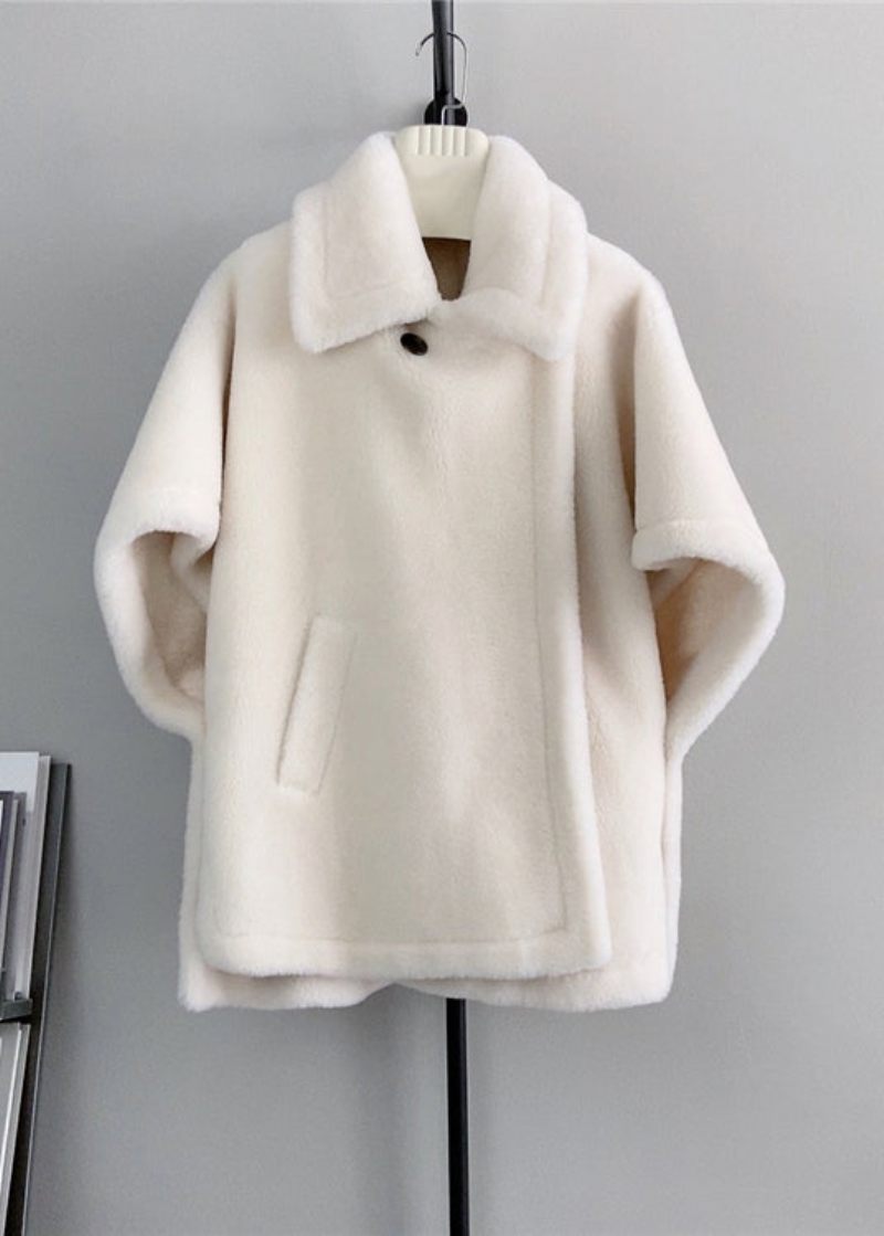 Fransk Beige Fyrkantig Krage Fickor Ull Cape Coats Vinter