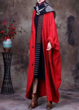Fransk Beige Oversized Stora Fickor Bomull Kappa Ytterkläder Höst