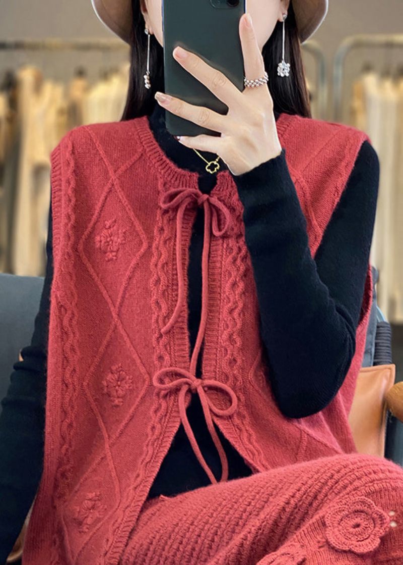 Fransk Choklad O-ringad Spetsad Patchwork Stickad Väst Ärmlös