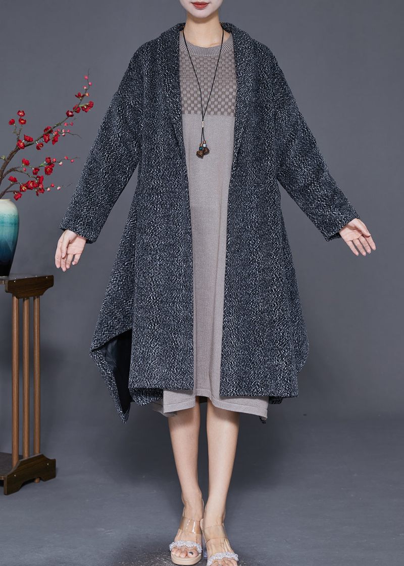 Fransk Grå Asymmetrisk Exra Large Hem Yllerock Ytterkläder Höst