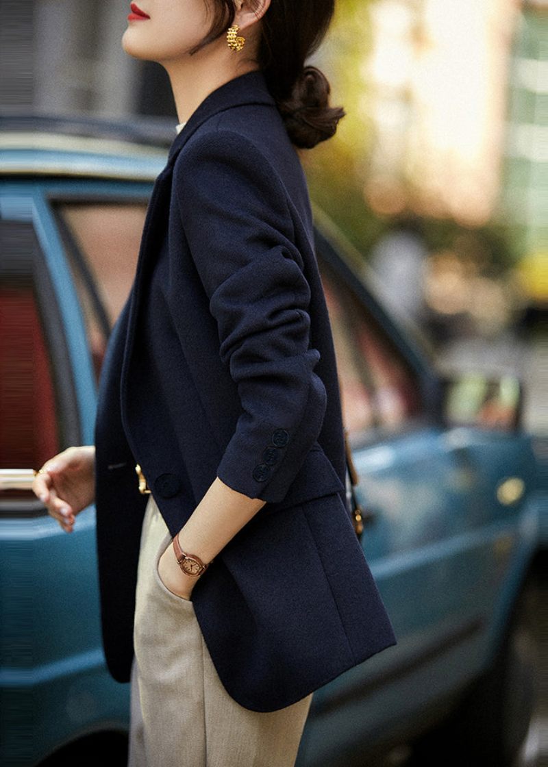 Fransk Marinslagsslag Svart Öppen Slim Fit Yllerock Höst