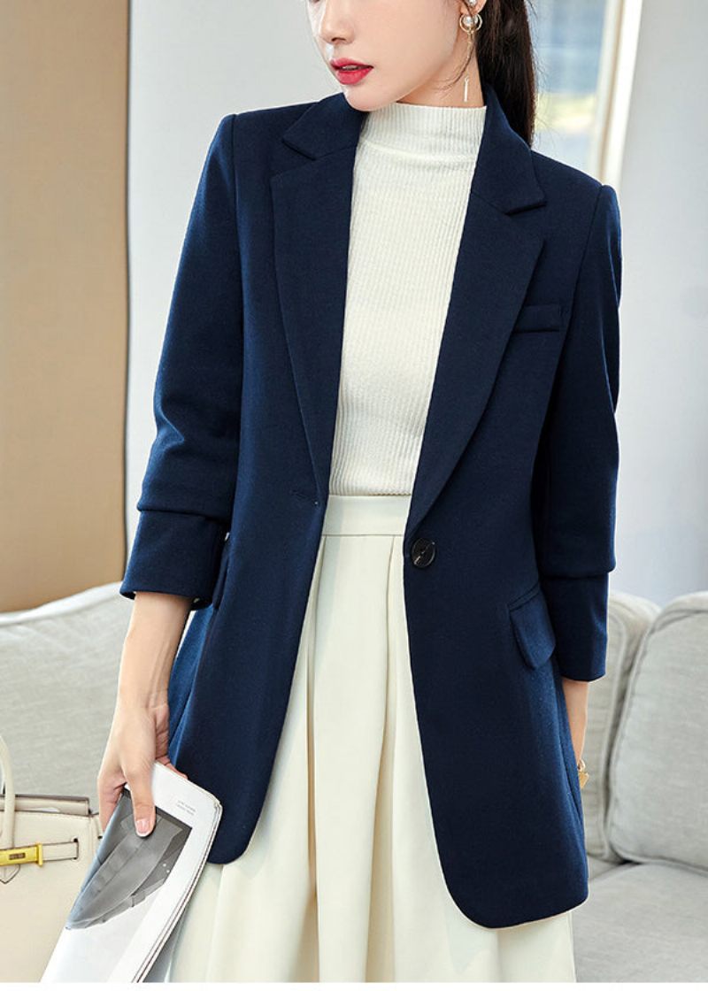 Fransk Marinslagsslag Svart Öppen Slim Fit Yllerock Höst