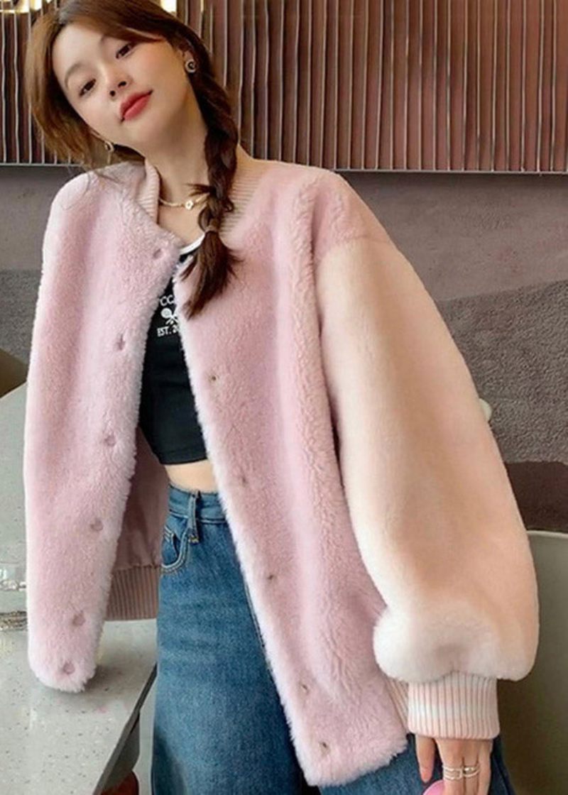 Fransk Rosa O-hals Patchwork Button Yllerockar Vinter