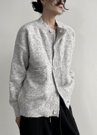 Fransk Silver Ihålig Stickad Cardigan Med Tofs Höst
