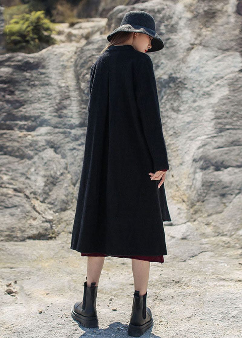 Fransk Svart Ståkrage Låg Hög Design Yllerockar Vinter