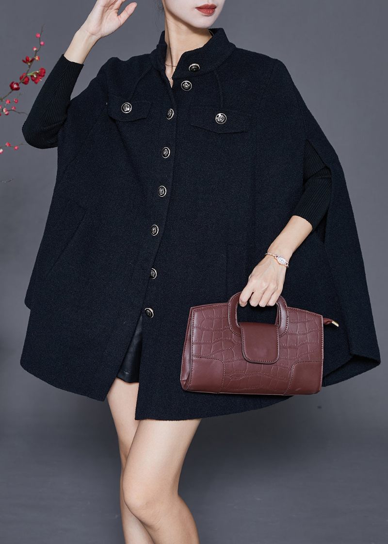 Fransk Svart Stativ Krage Knapp Yllerockar Kappa Ärmar